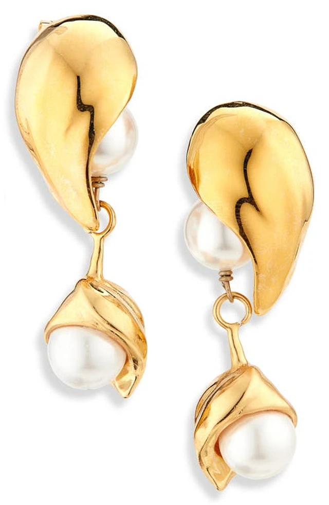 Oscar de la Renta Imitation Pearl Abstract Leaf Drop Earrings in Gold at Nordstrom