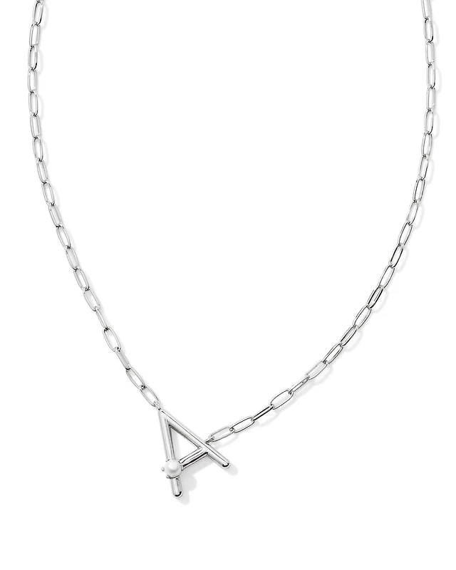 Pearl Silver Letter A Short Pendant Necklace in Freshwater Cultured Pearl