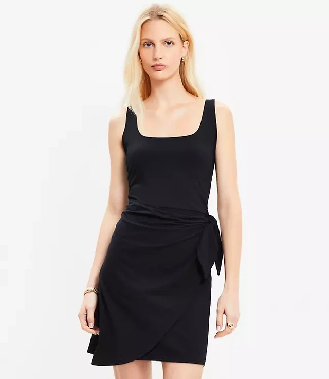 Petite LOFT Versa Crepe Drape Asymmetrical Vest Mini Dress