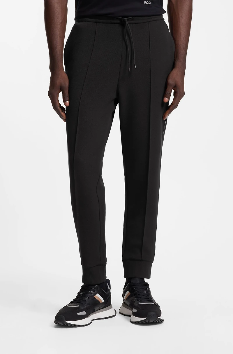 Cut to a straight fit in a stretchy cotton, these BOSS Menswear tracksuit bottoms are a classic casual foundation. Contrast piping. Retro-inspired stitching.