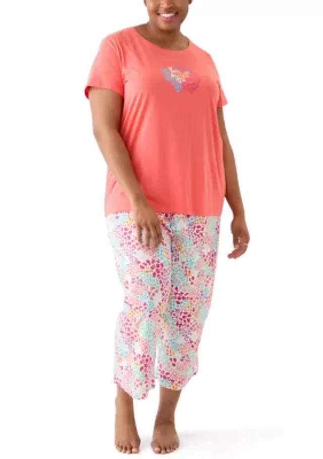 Plus Cotton Knit T-Shirt and Capri Pajama Set