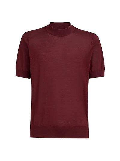 Lightweight Silk and Cotton Knit T-Shirt with Mock Neck