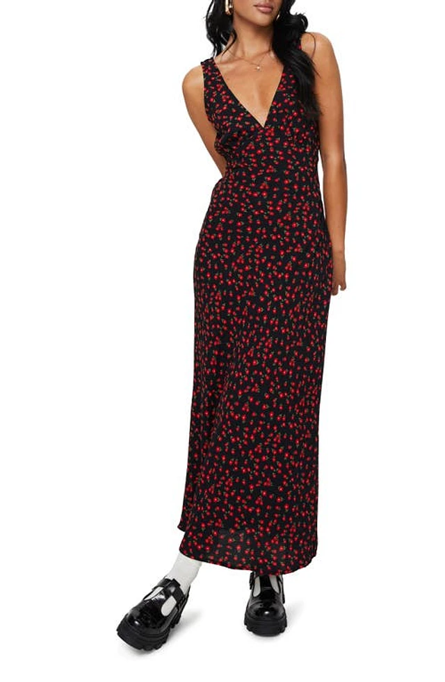 Princess Polly Nellie Floral Maxi Dress in Black/Red Floral at Nordstrom, Size 8