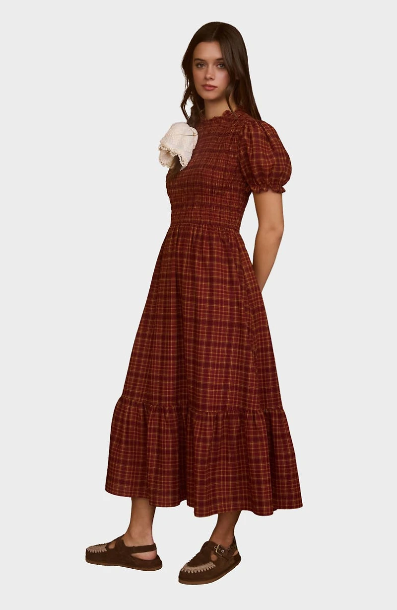 Make a statement in this effortlessly sweet, smocked maxi dress designed with puff sleeves and a back keyhole with dainty ties.