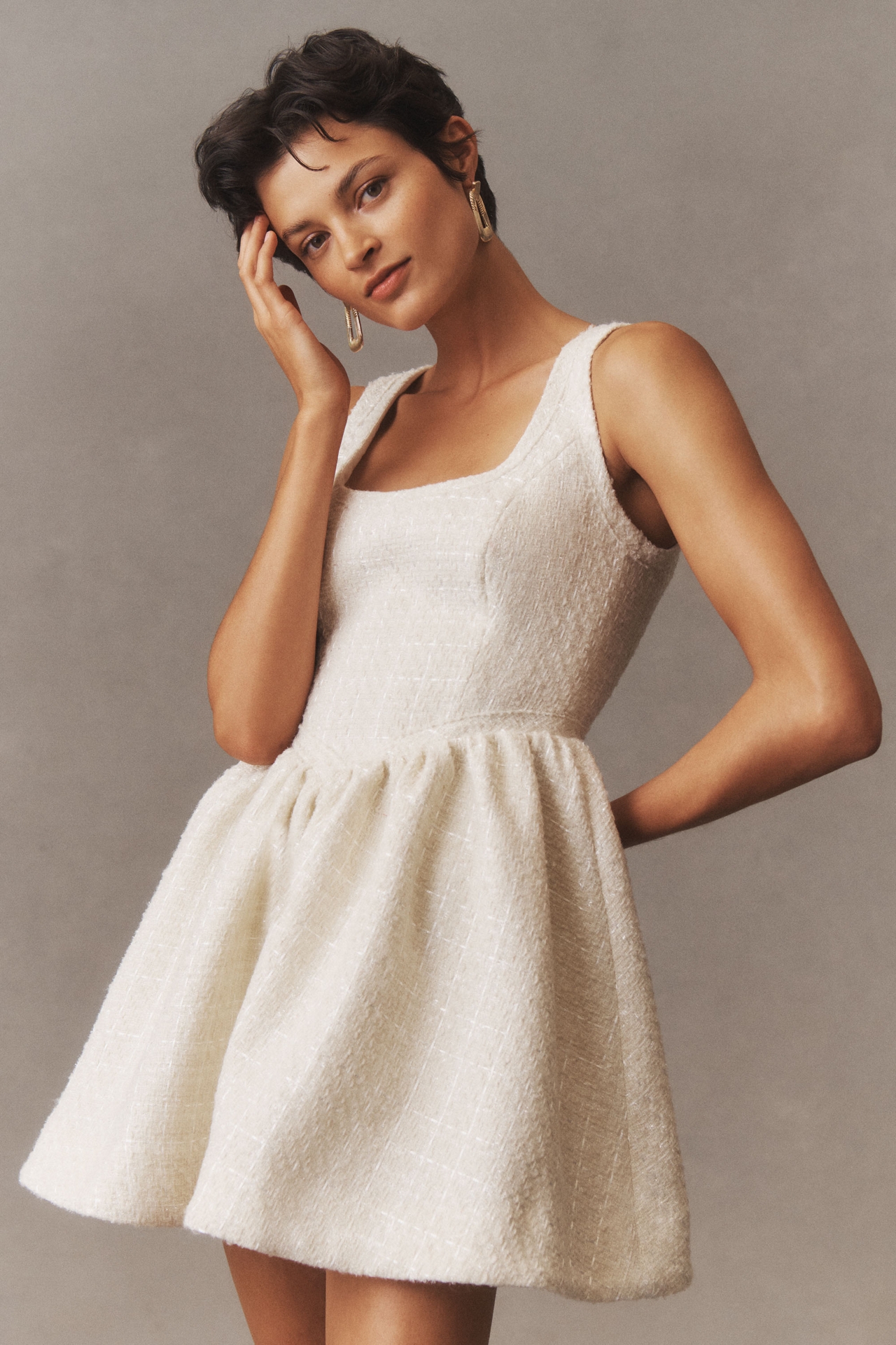 By Anthropologie Sleeveless Square-Neck Tweed Fit & Flare Mini Dress