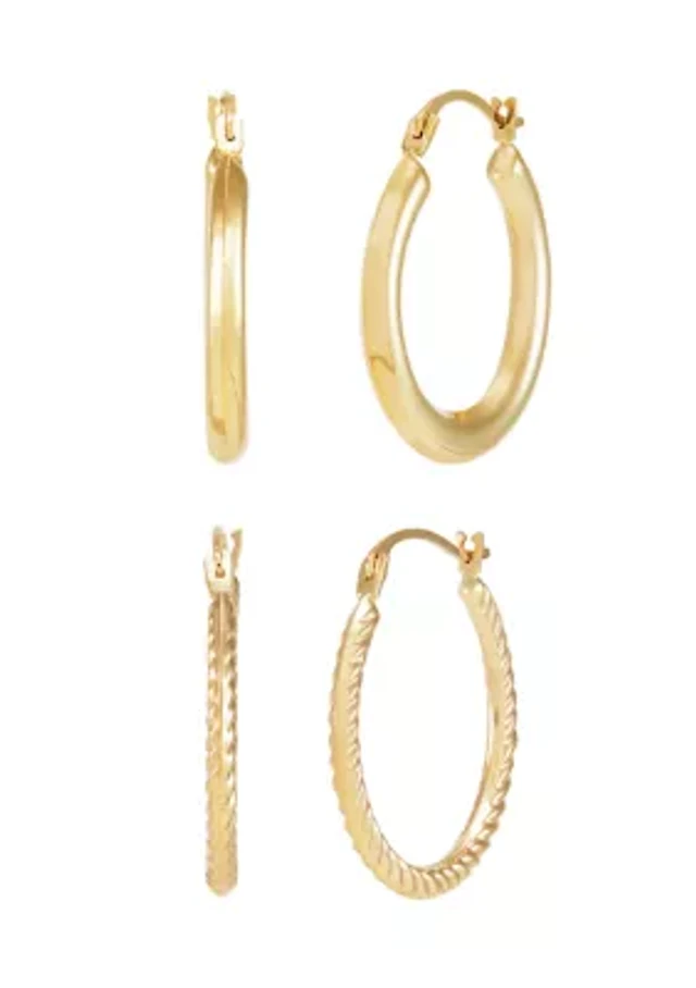 Round Hoop and Shrimp Hoop Earrings Set in 10K Yellow Gold