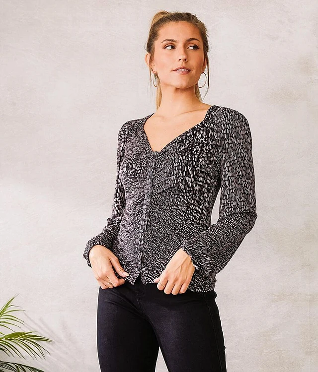Kimchi Blue Lily Ruched Foldover Off-The-Shoulder Knit Top