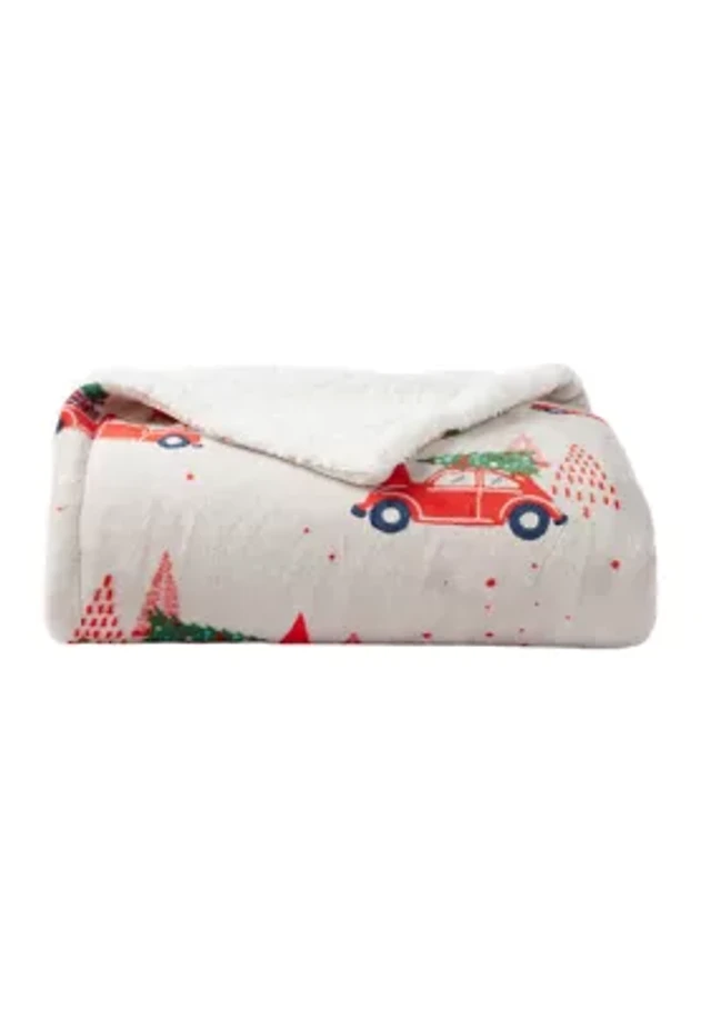 Sherpa Printed Plush Throw Blanket
