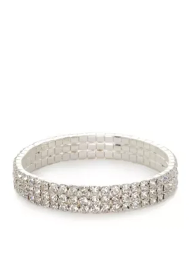 Silver Tone Crystal Stretch Bracelet