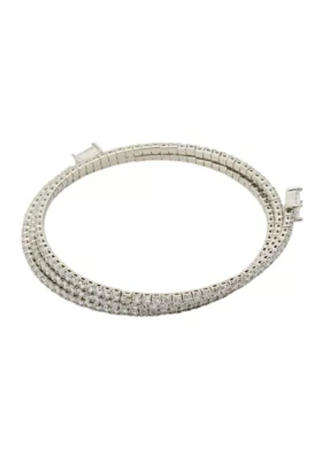 Silver Tone Delicate Cubic Zirconia Coil Stacking Bracelet