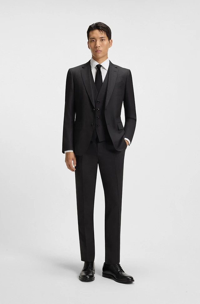 Three-Piece Slim-fit Suit Patterned Stretch Wool