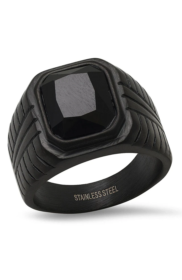 Men's Stainless Steel Ring with Black Plating