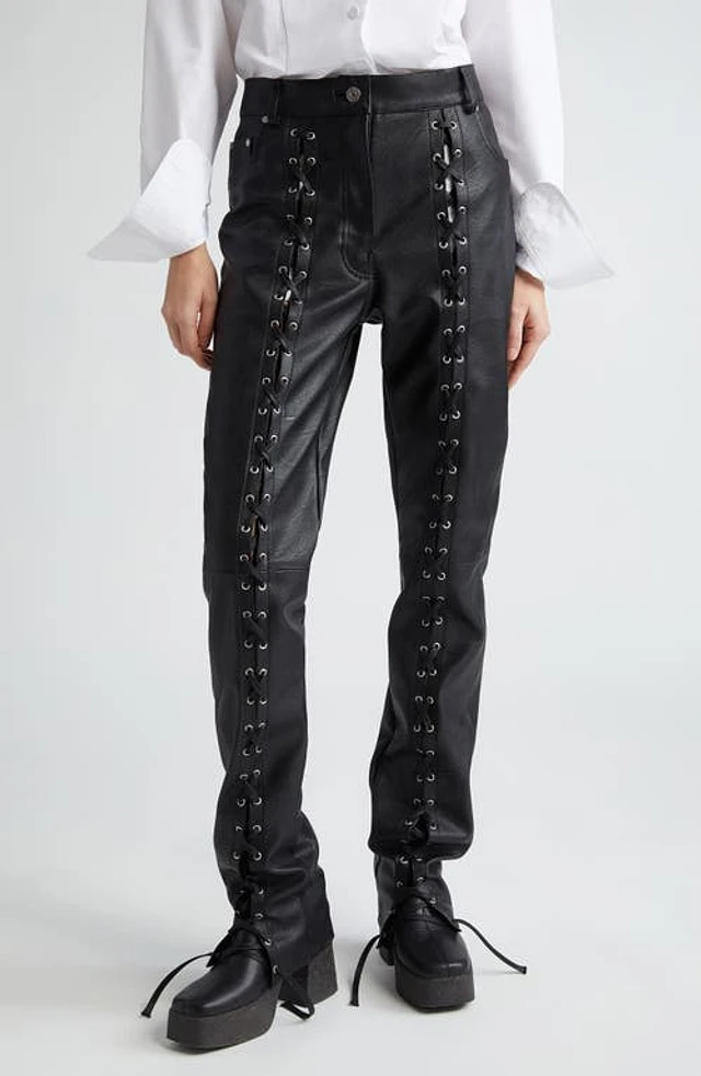 Stella McCartney Slim Fit Lace-Up Faux Leather Pants Black at Nordstrom, Us