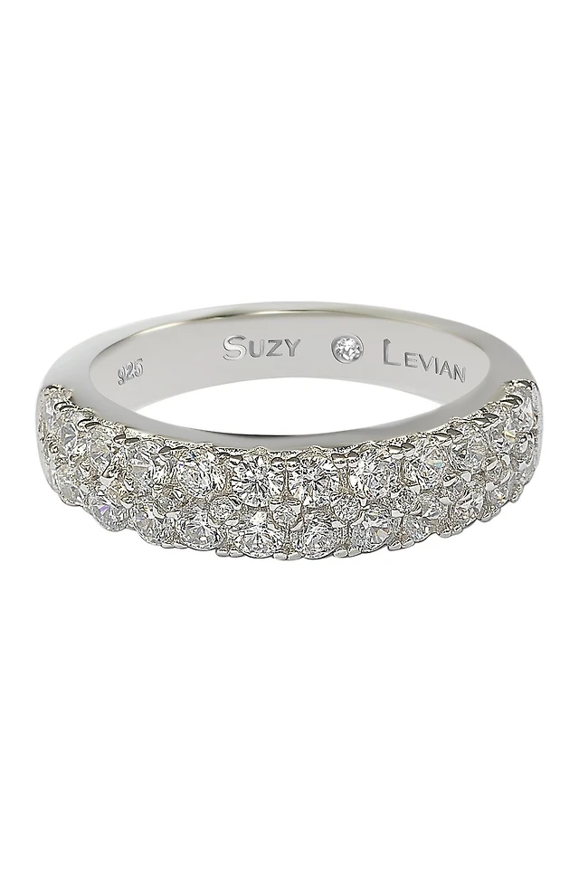 Sterling Silver 3-Row Pave CZ Band Ring