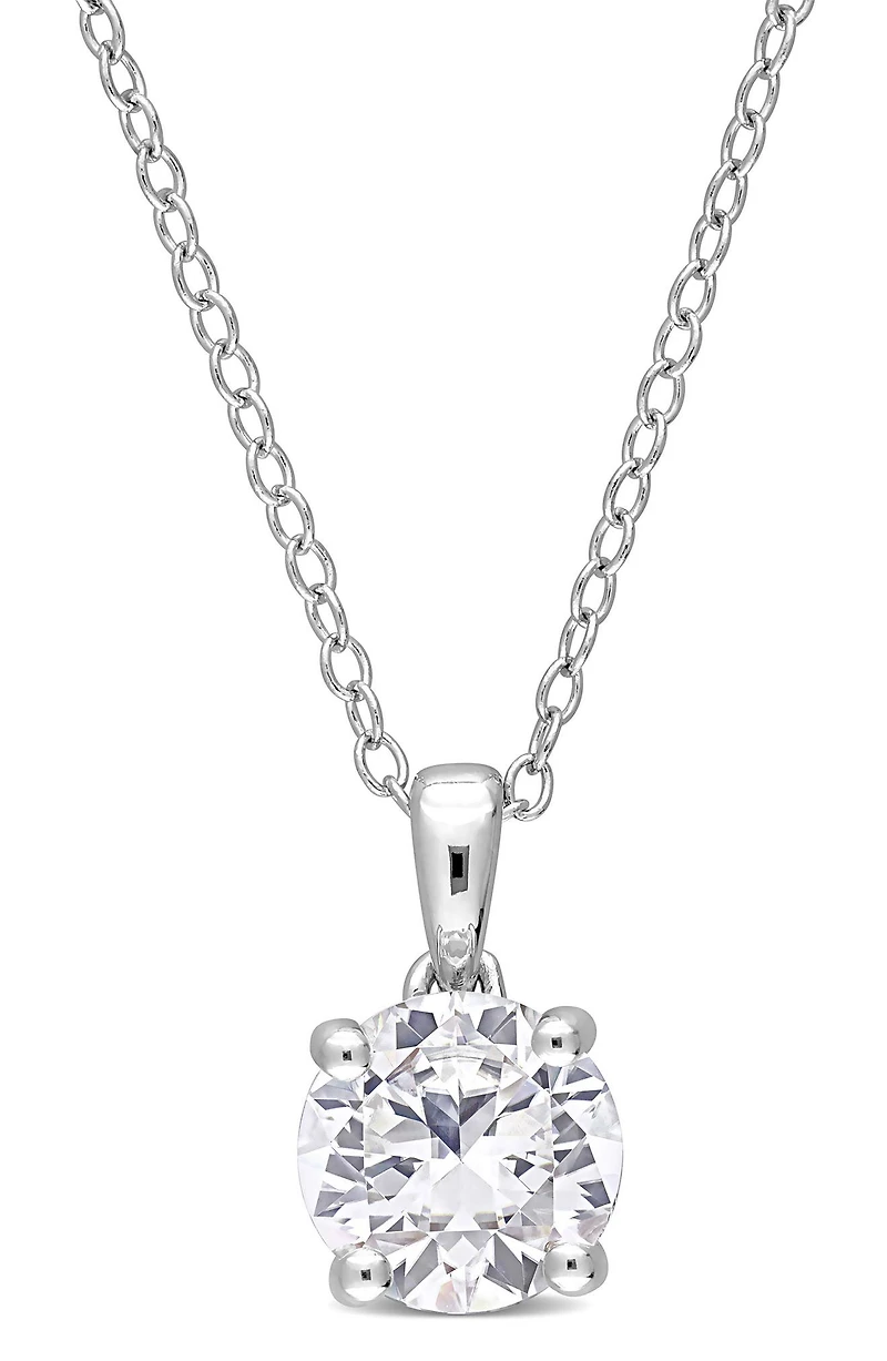 Add the perfect finishing touch to your ensemble with this sterling-silver solitaire necklace featuring a round-cut created white sapphire pendant.