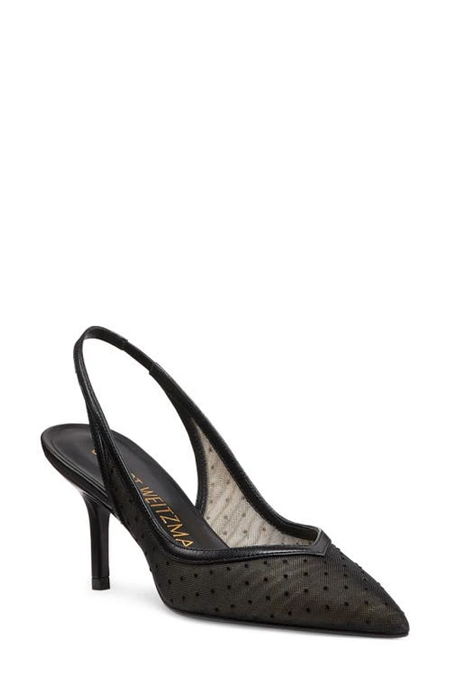 Stuart Weitzman Eva 75 Pointed Toe Slingback Pump Black at Nordstrom,