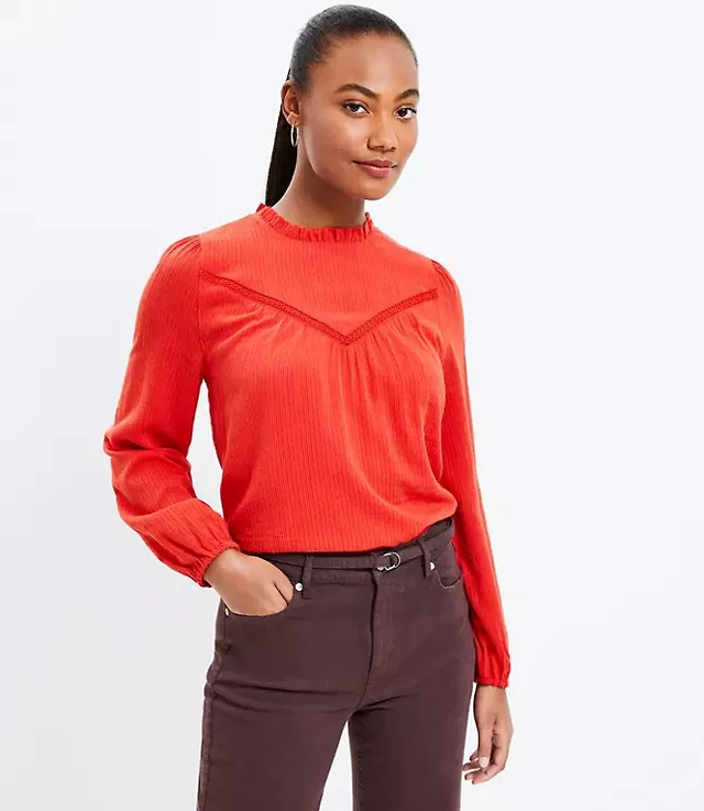 Ann Taylor Ruffle Neck Blouse Winter White Women's