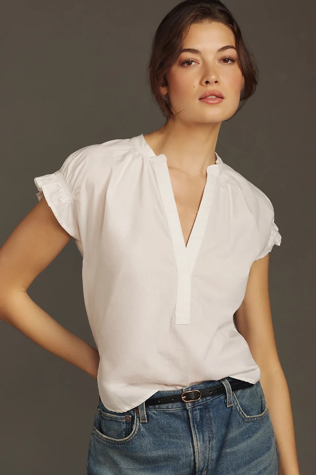 The Tatum Flutter-Sleeve Blouse by Pilcro: Poplin Edition
