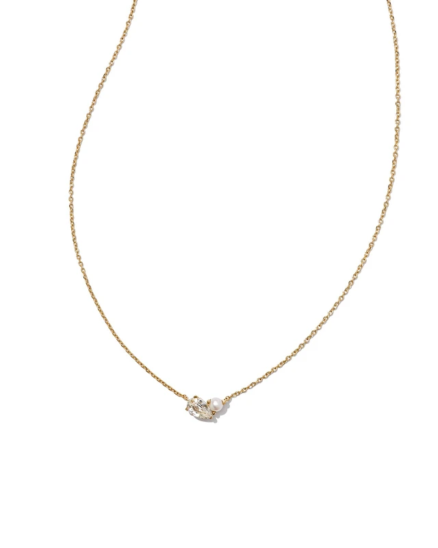 Toi et Moi 14k Yellow Gold Pendant Necklace in White Sapphire and White Pearl