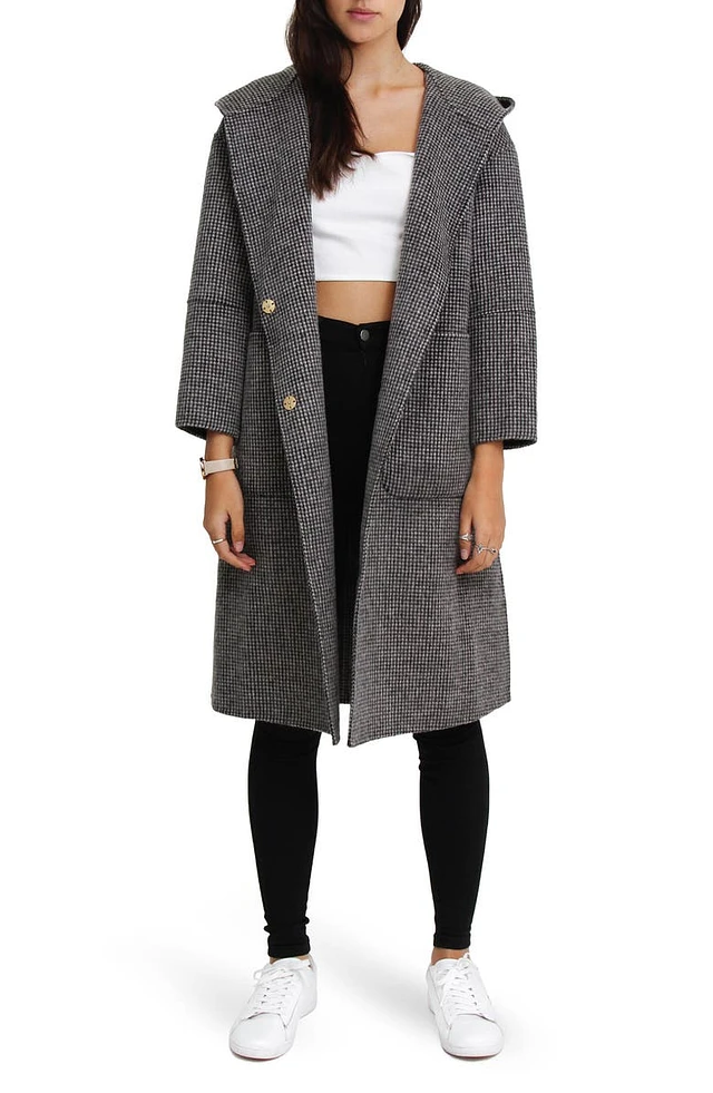 Walk This Way Houndstooth Print Wool Blend Coat