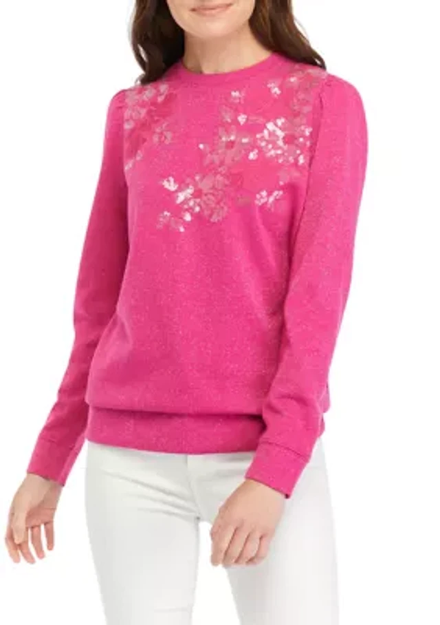 Women's Long Sleeve Sequin Crew Neck T-Shirt