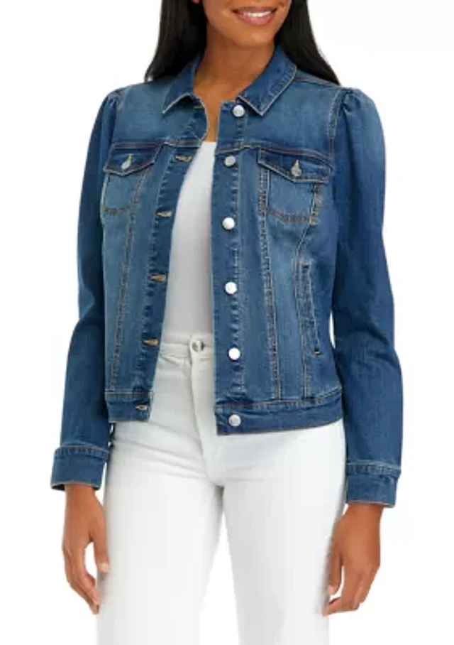 Mara Puff-Sleeve Denim Midi-Shirtdress