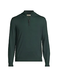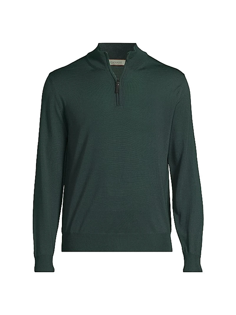 Crafted of wool, this sweater from Canali highlights a stand collar, rib-knit trim, and a front quarter-zip closure.
