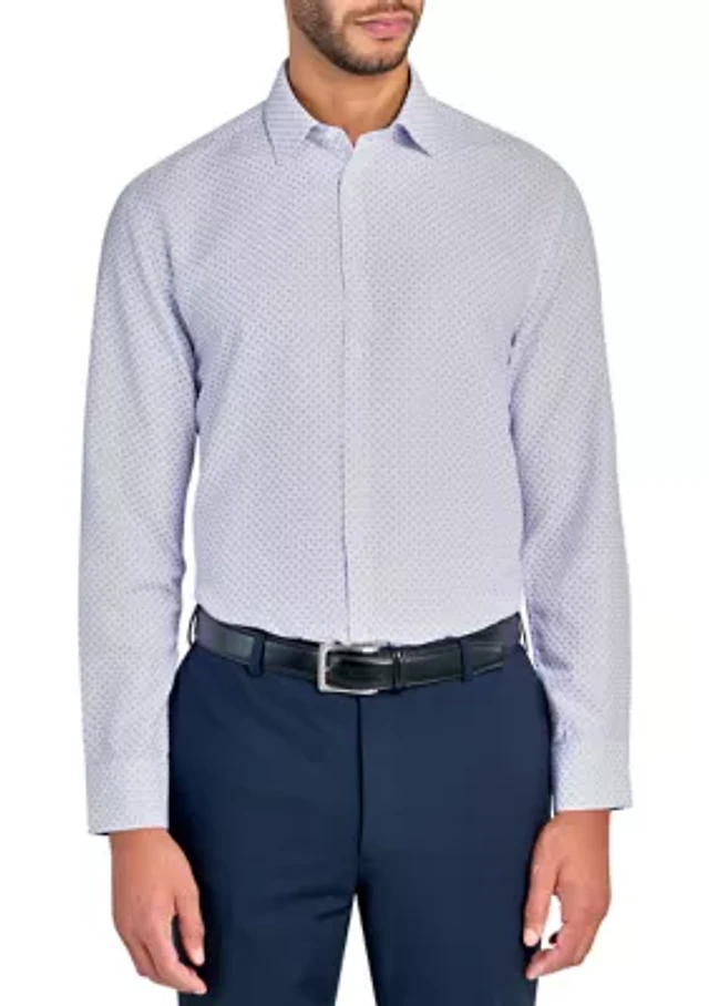 Men's Traveler® Performance Tailored Fit 4 Way Stretch Long Sleeve Casual Shirt at Jos. A. Bank, Cream/Navy/White