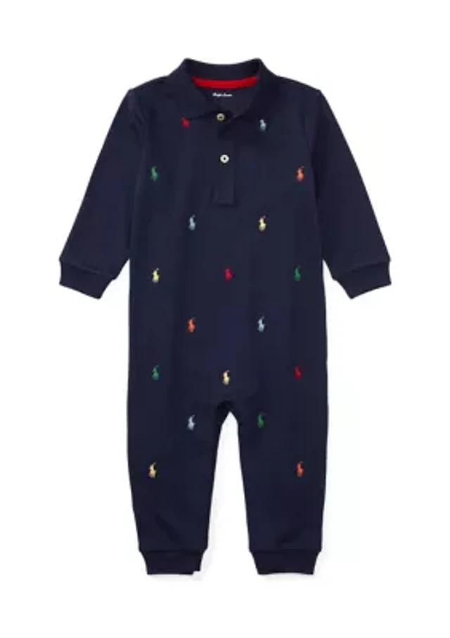 Baby Boys Embroidered Cotton Coveralls