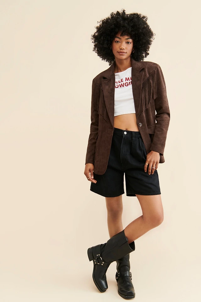BLANKNYC Down to Earth Real Suede Fringe Jacket