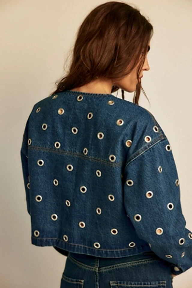 BLANKNYC Silver Dreams Grommet Cutout Cropped Denim Jacket