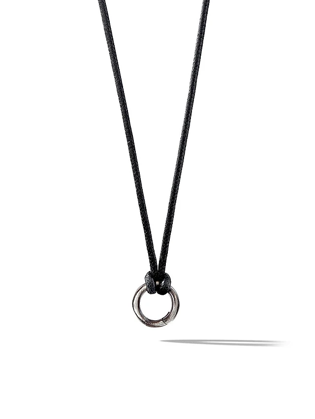 Circle Amulet Necklace Sterling Silver and Black Wax Cord 1.7mm