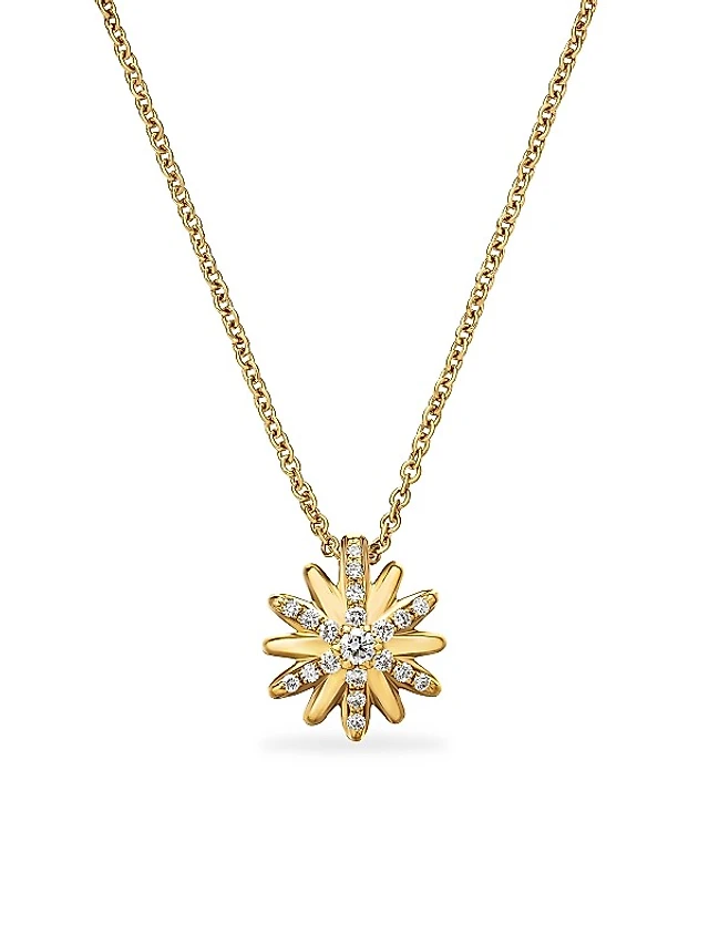 Petite Starburst Pendant Necklace in 18K Yellow Gold with Diamonds, 10.5mm