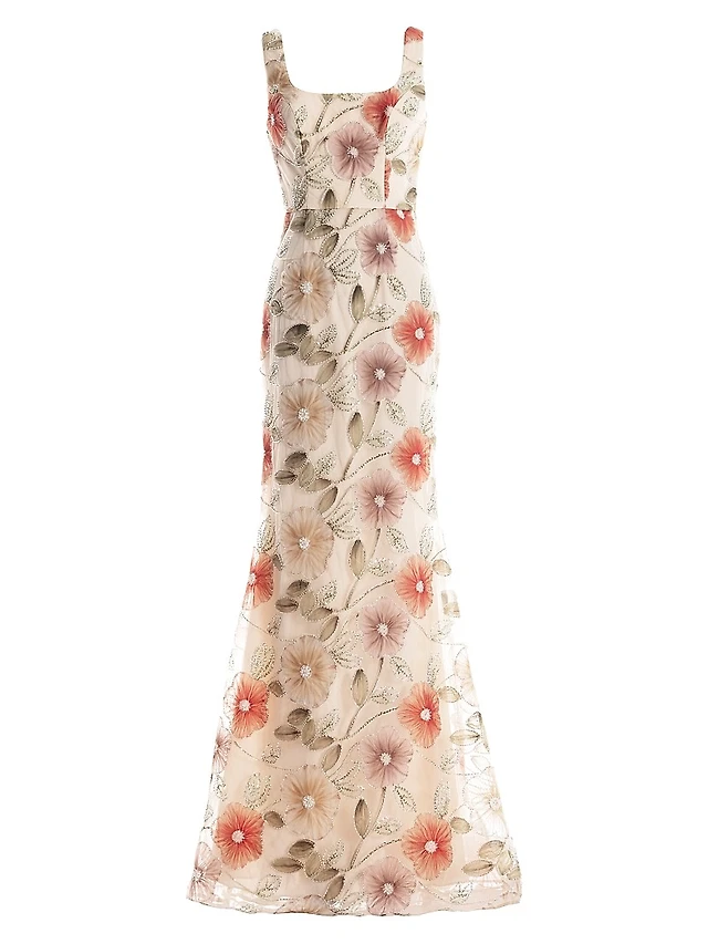 Tyra Embellished Floral Sleeveless Mermaid Gown