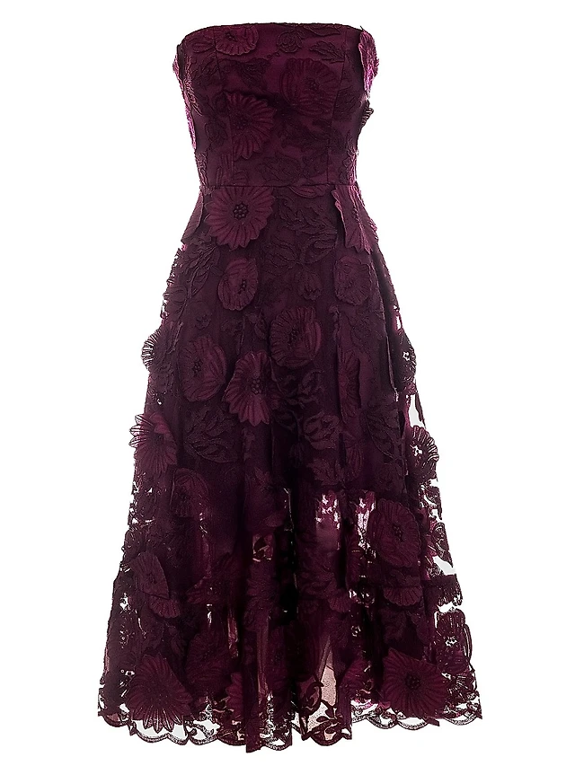 Carina Floral Embroidered Strapless Bustier Fit & Flare Dress