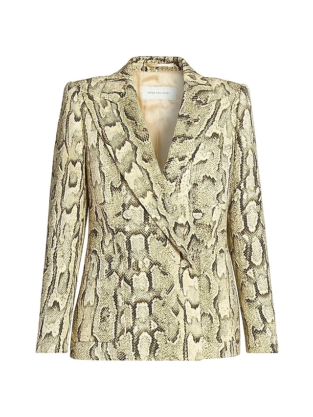 Snakeskin Print Double-Breasted Button-Front Jacket