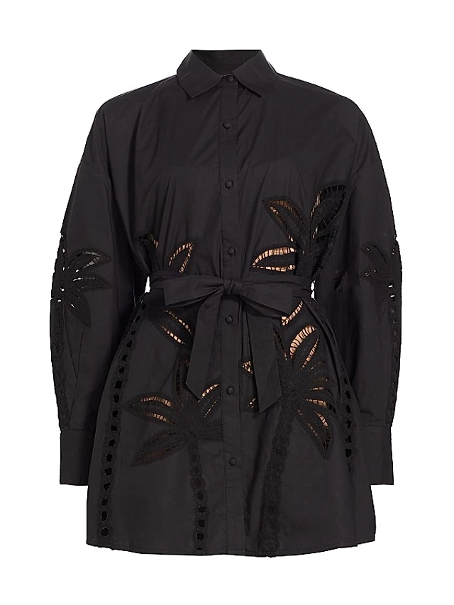 Niti Floral Eyelet Cotton Maxi Shirtdress