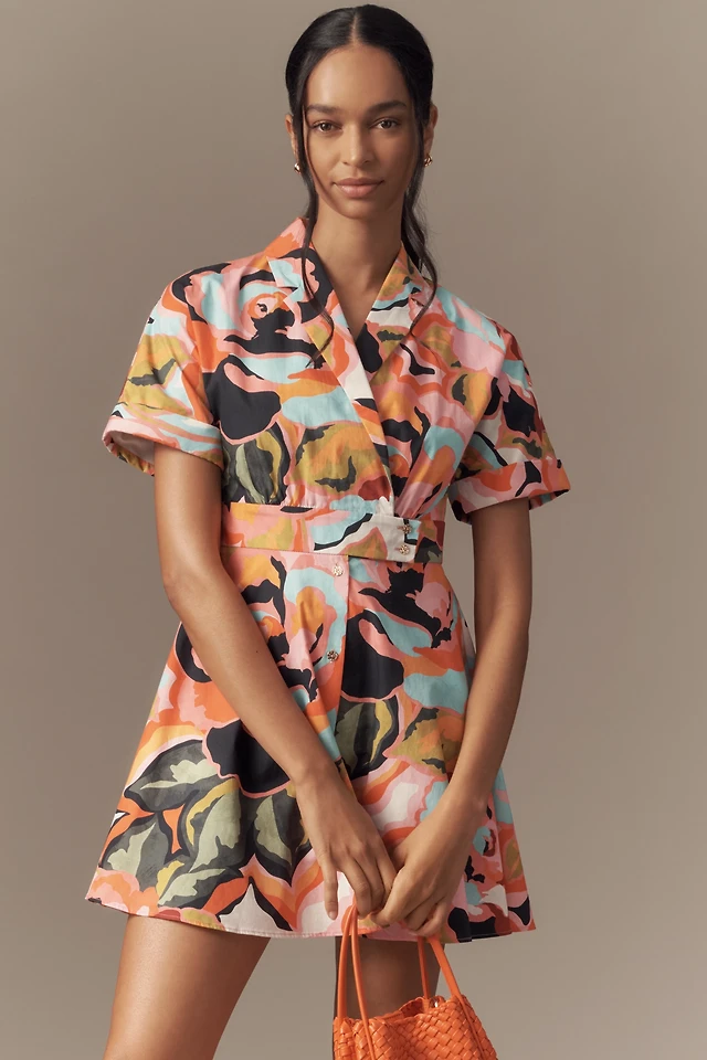 Hutch Printed Twist-Front Puff-Sleeve Ruffle-Hem Dress