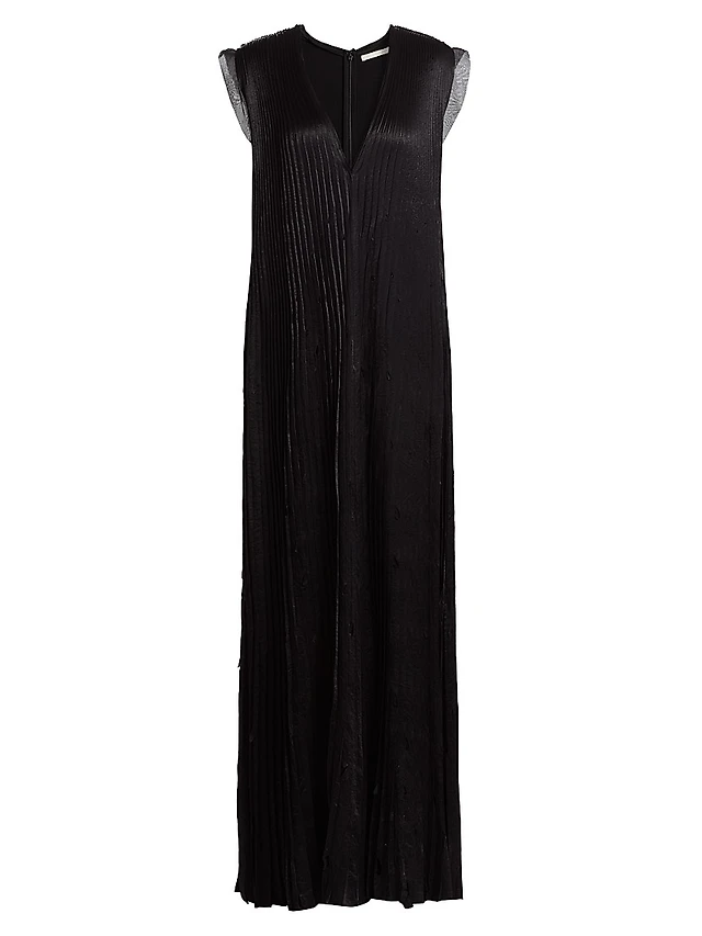 Semi-Sheer Long-Sleeve Turtleneck Maxi Dress