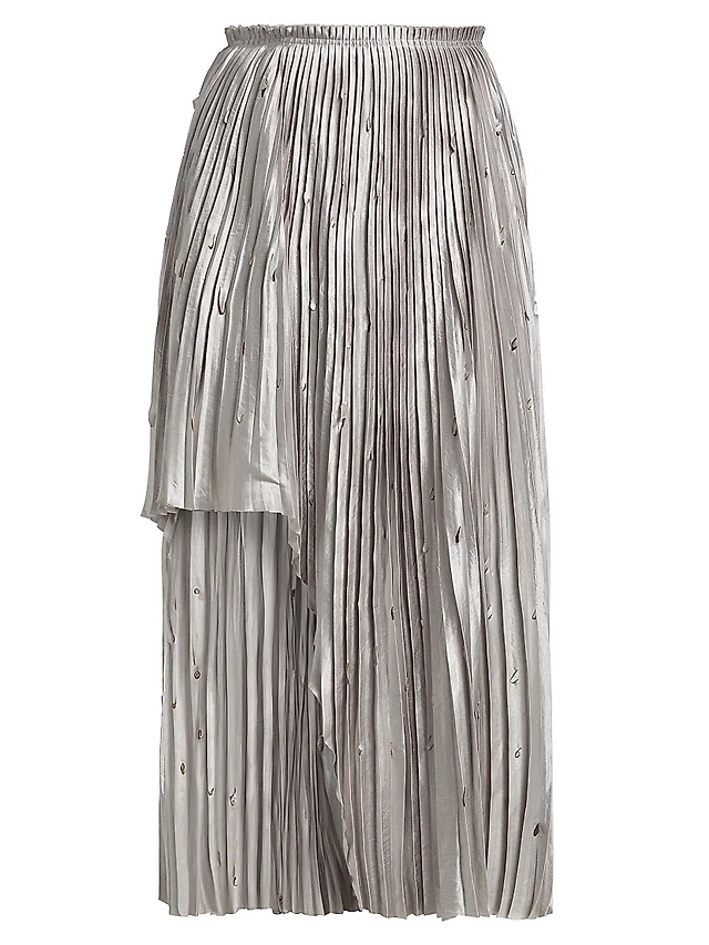 Painted Stripe Pleated Asymmetrical Midi-Skirt