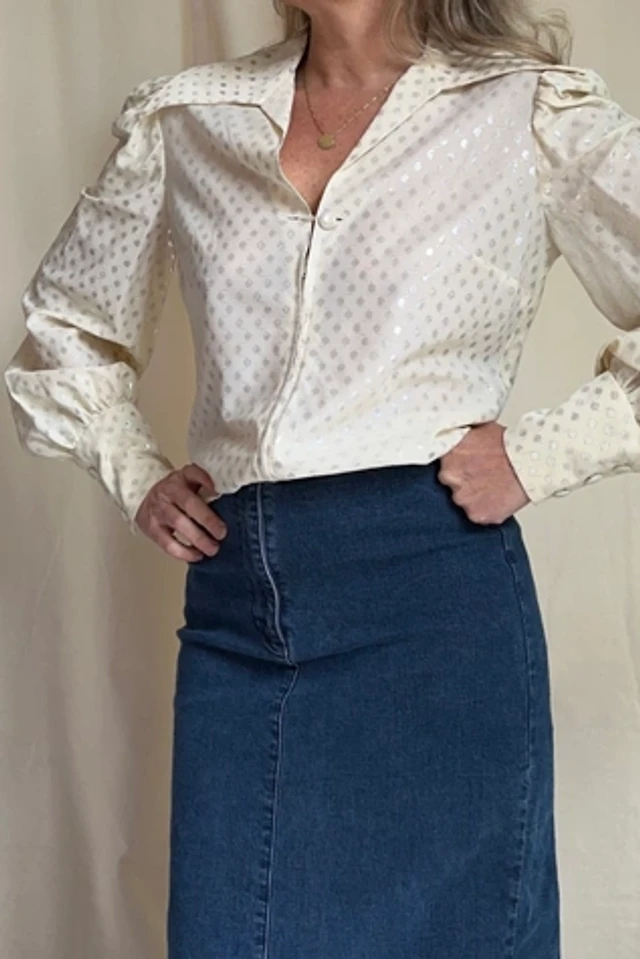 Vintage Ecru and Silver Dot Zip Front Blouse Selected by KA.TL.AK