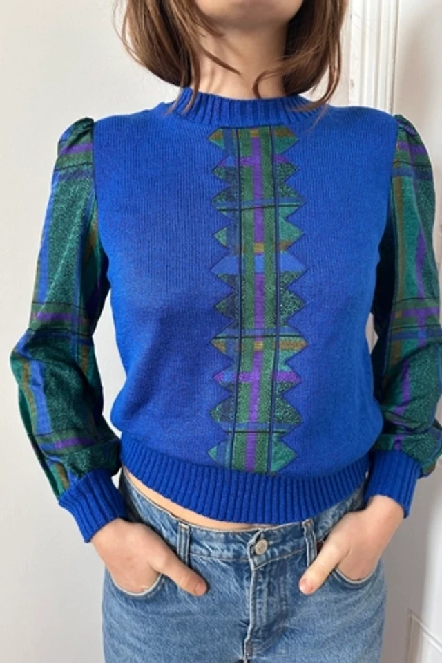 Vintage Blue Sweater with Silky Sleeves Selected by KA.TL.AK