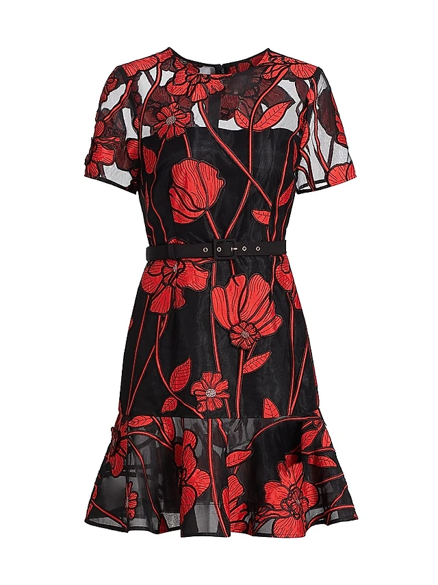 Yasmin Floral-Embroidered Fit & Flare Minidress