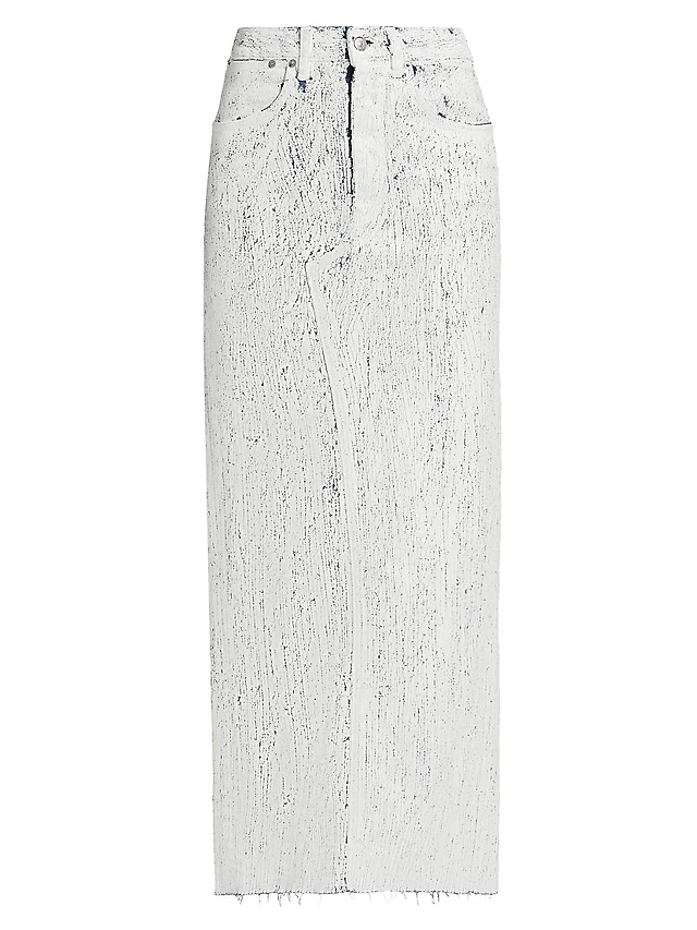 Crackled Denim Maxi Skirt