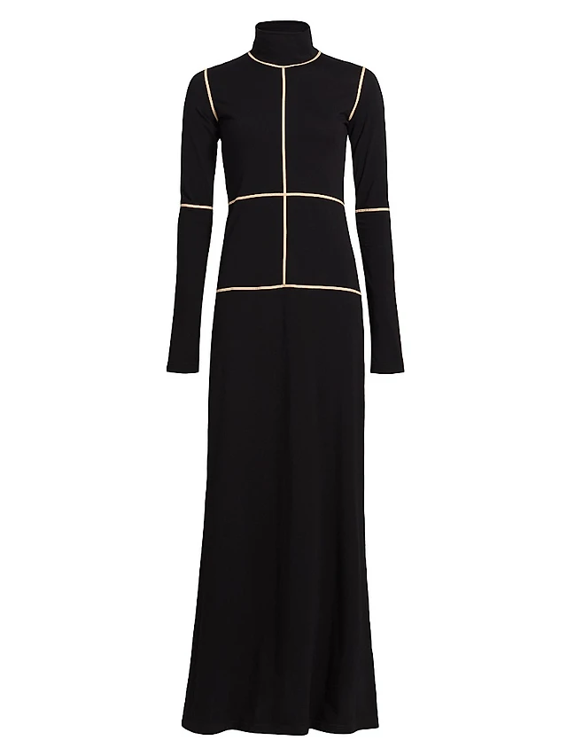 Contrast Piped Cotton Jersey Maxi Dress