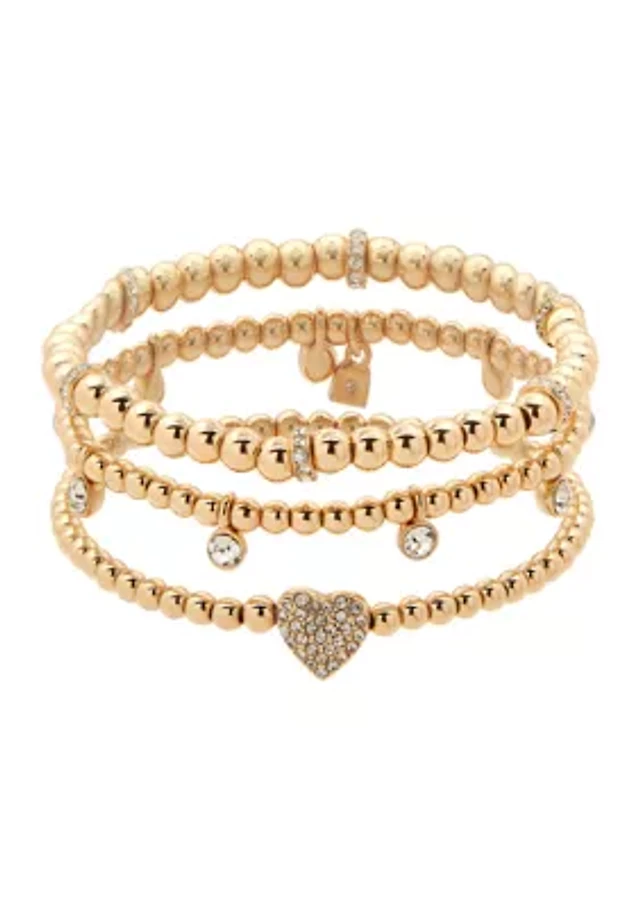 Gold Tone Heart Padlock Stretch Bracelet Set