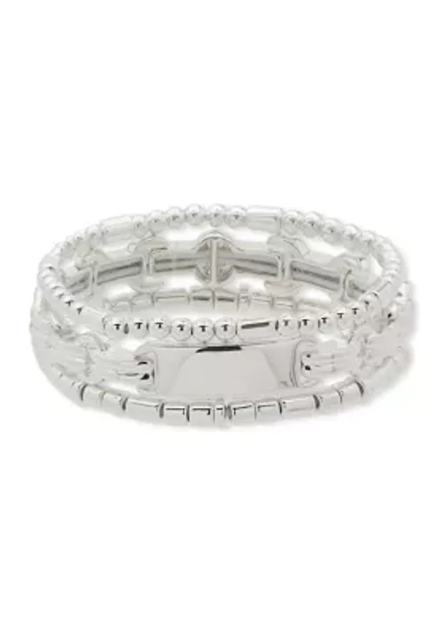 Silver Tone Beaded Stretch Bracelet - Set of 3