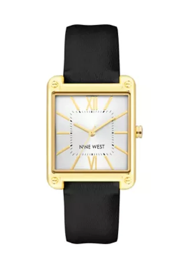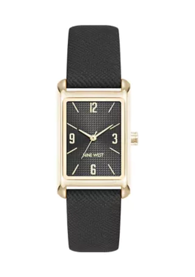 Quartz Boyfriend Gold Tone and Polyurethane Leather Band Watch