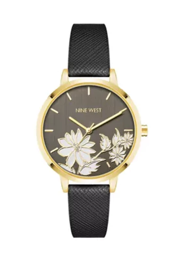 Quartz Metal Alloy Embossed Floral Dial Watch