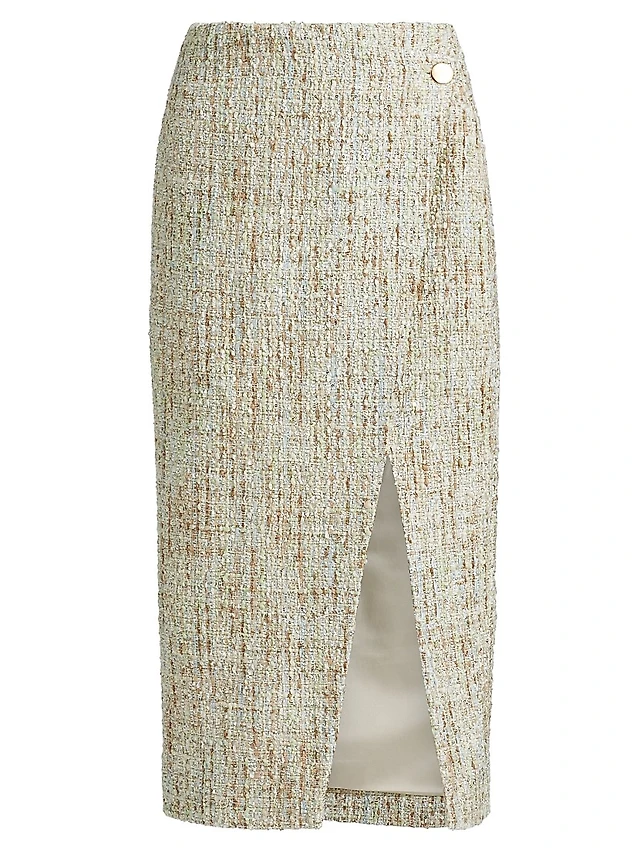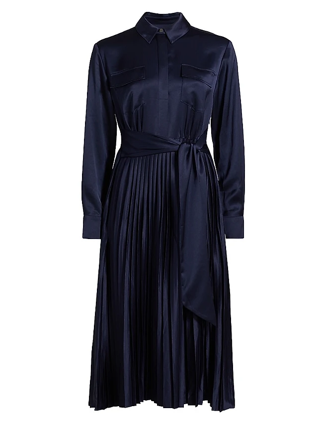 Peggy Houndstooth Turtleneck Tie-Waist Midi-Dress